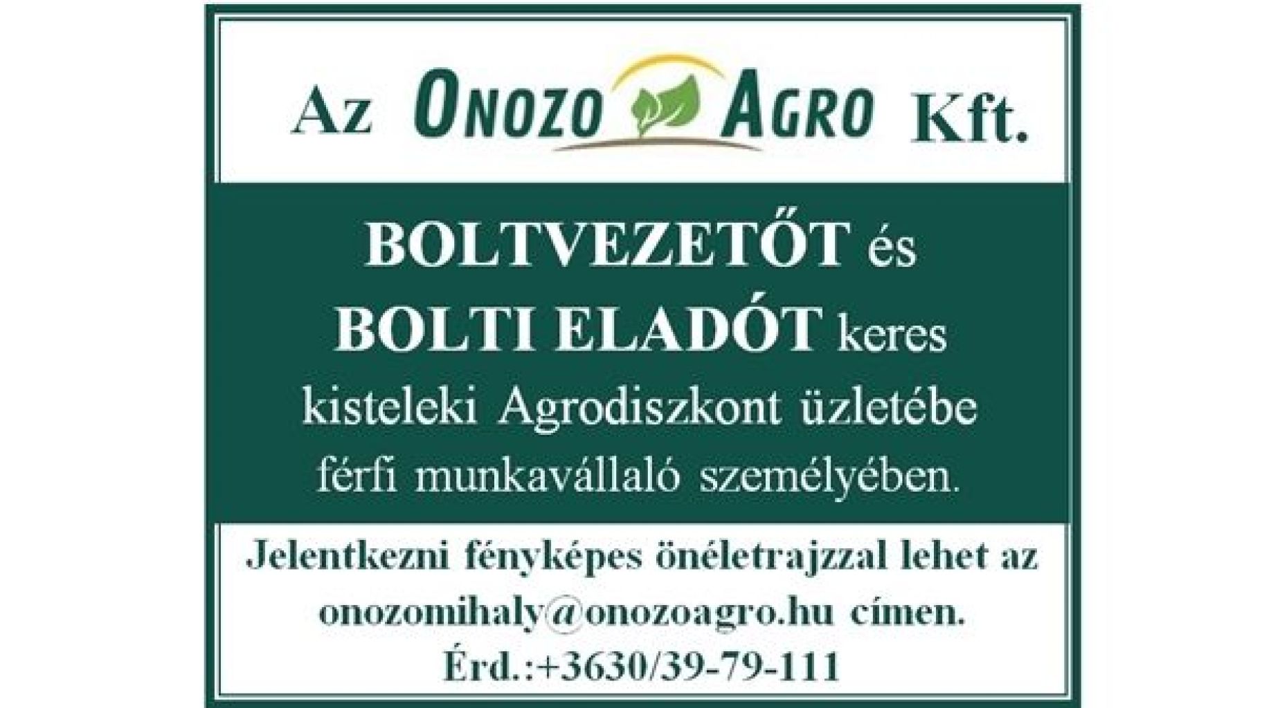 Álláshirdetés boltvezetői és bolti eladói munkakörbe